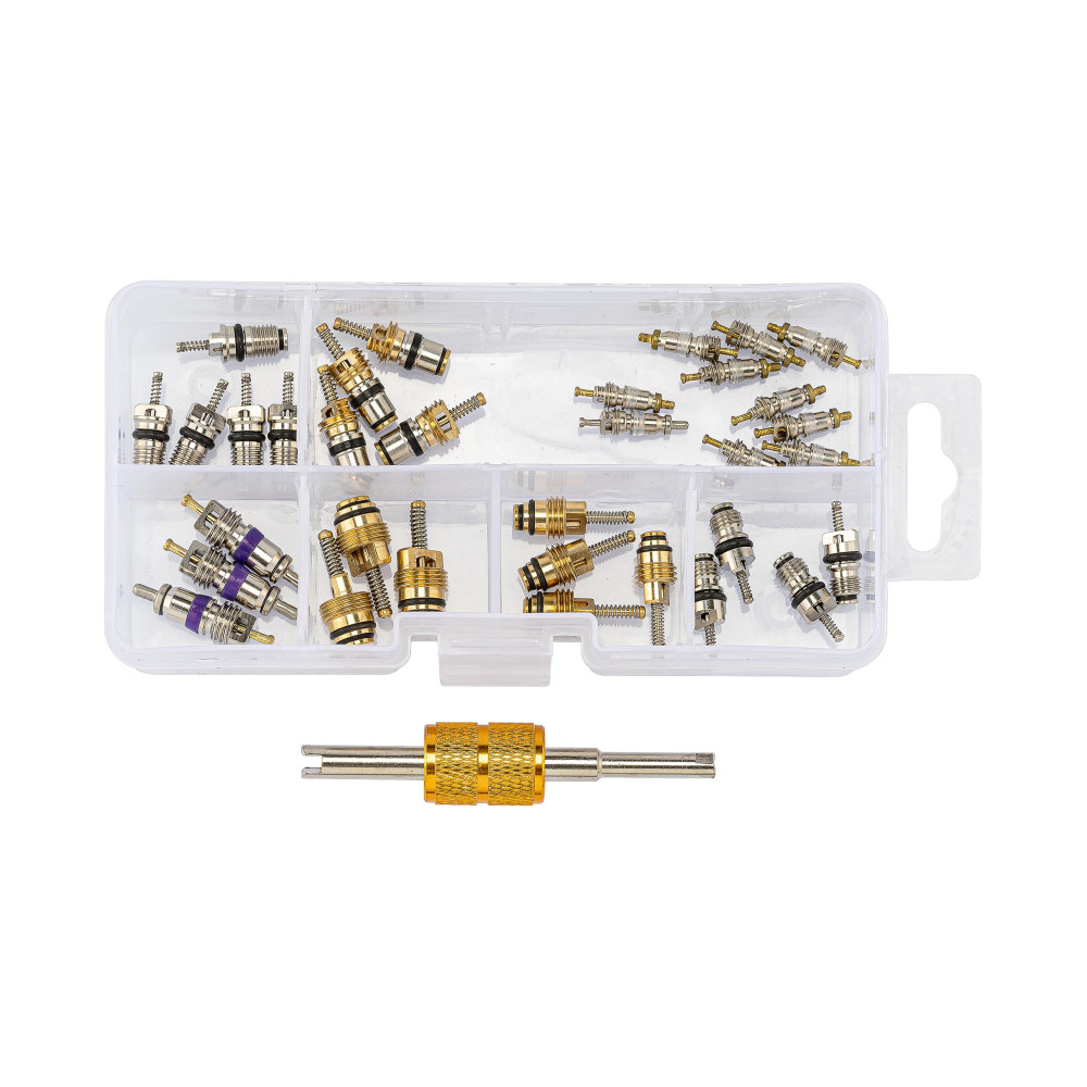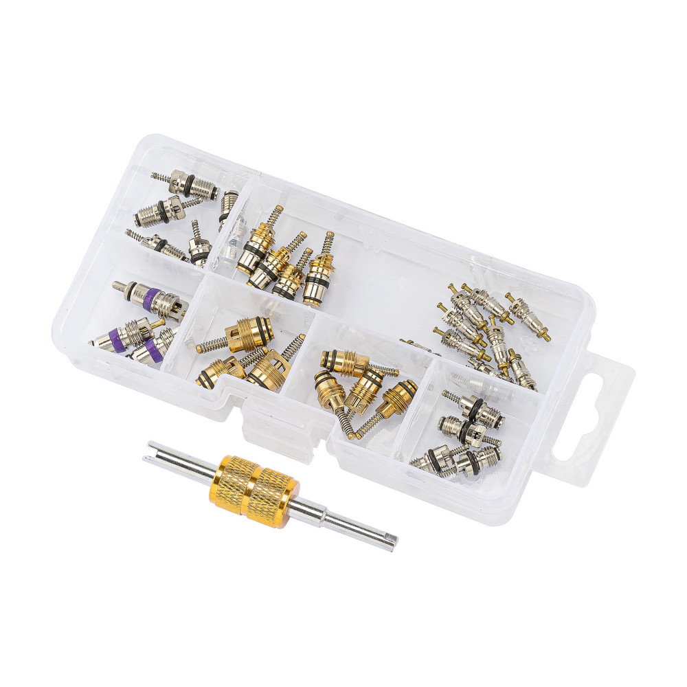 • В комплекте: R12 x 10, R134a x 5, FORD/CITROEN x 4, HYUNDAI x 4, R134a M8 x 4, R134a M10 x 3, BENZ/BMW x 3.