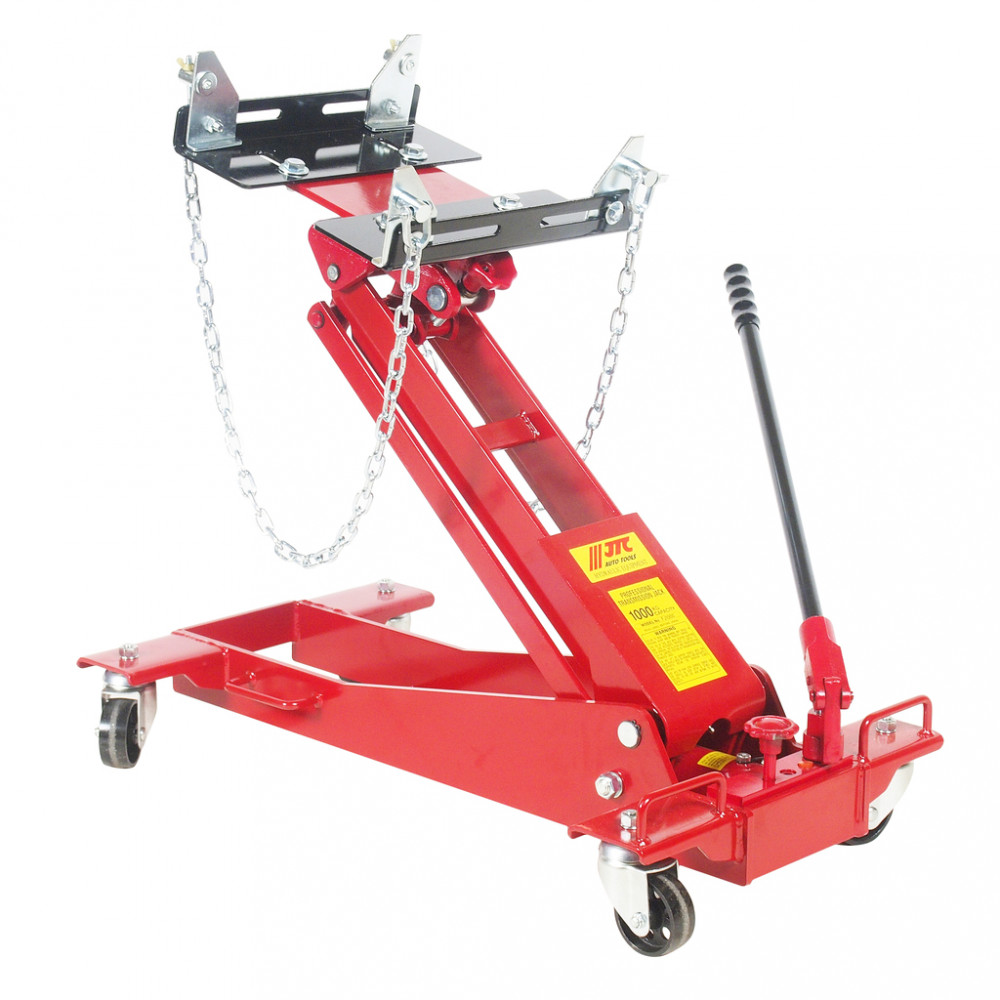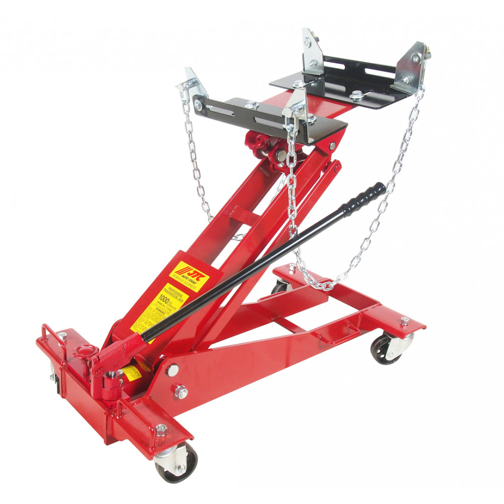 - Домкрат оснащений універсальним супортом з регульованими кутовими кронштейнами та запобіжними ланцюгами для обслуговування елементів трансмісії та інших ремонтних робіт.