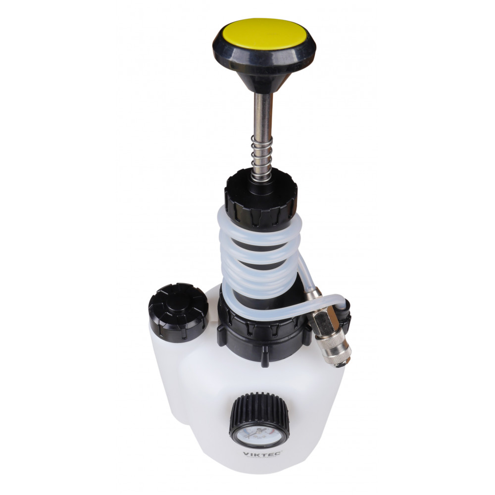 Гальмівна рідина подається в розширювальний бачок під тиском, який створюється ручним насосом на пристрої.