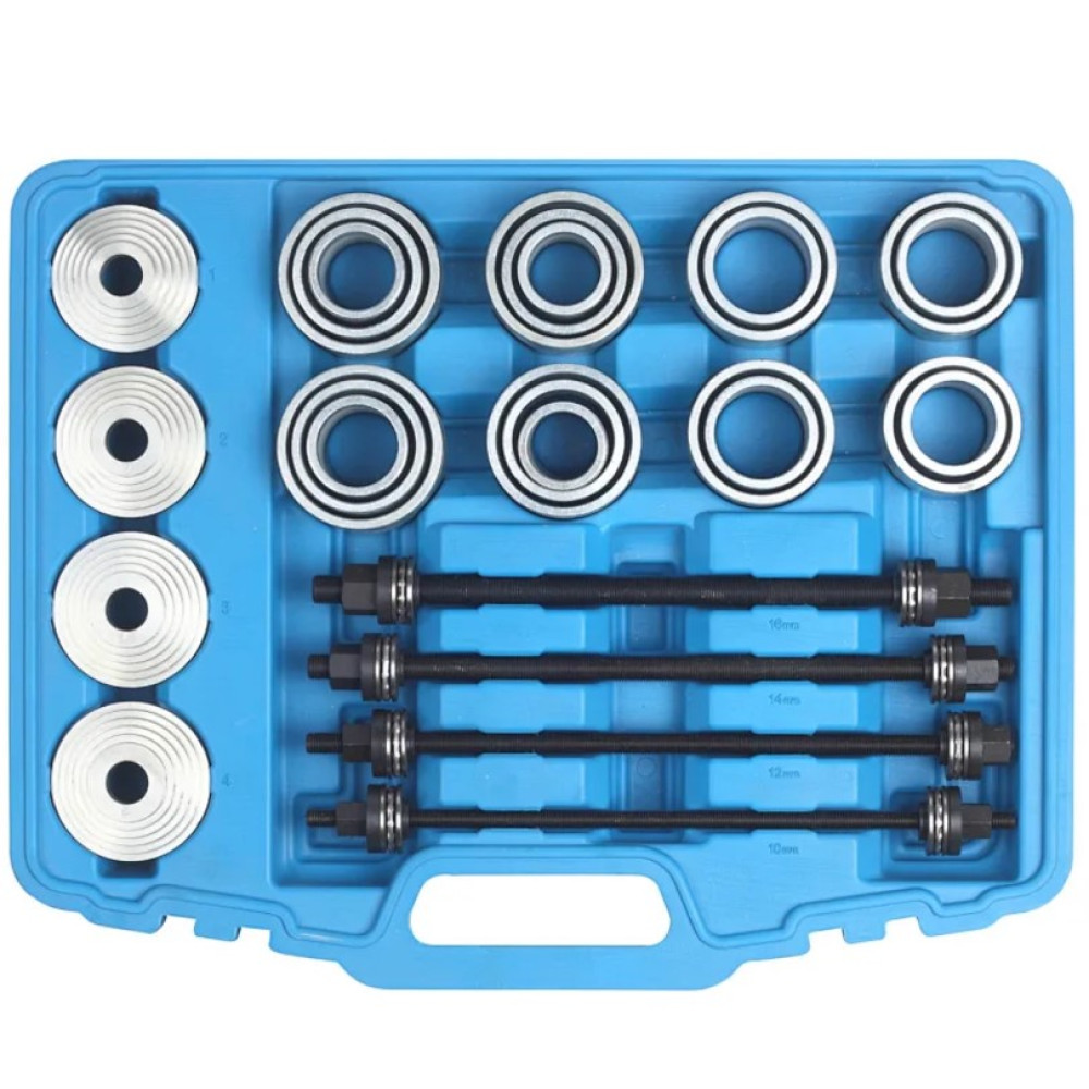 - Універсальний набір використовується для зняття та встановлення сайлентблоків та гумових втулок.