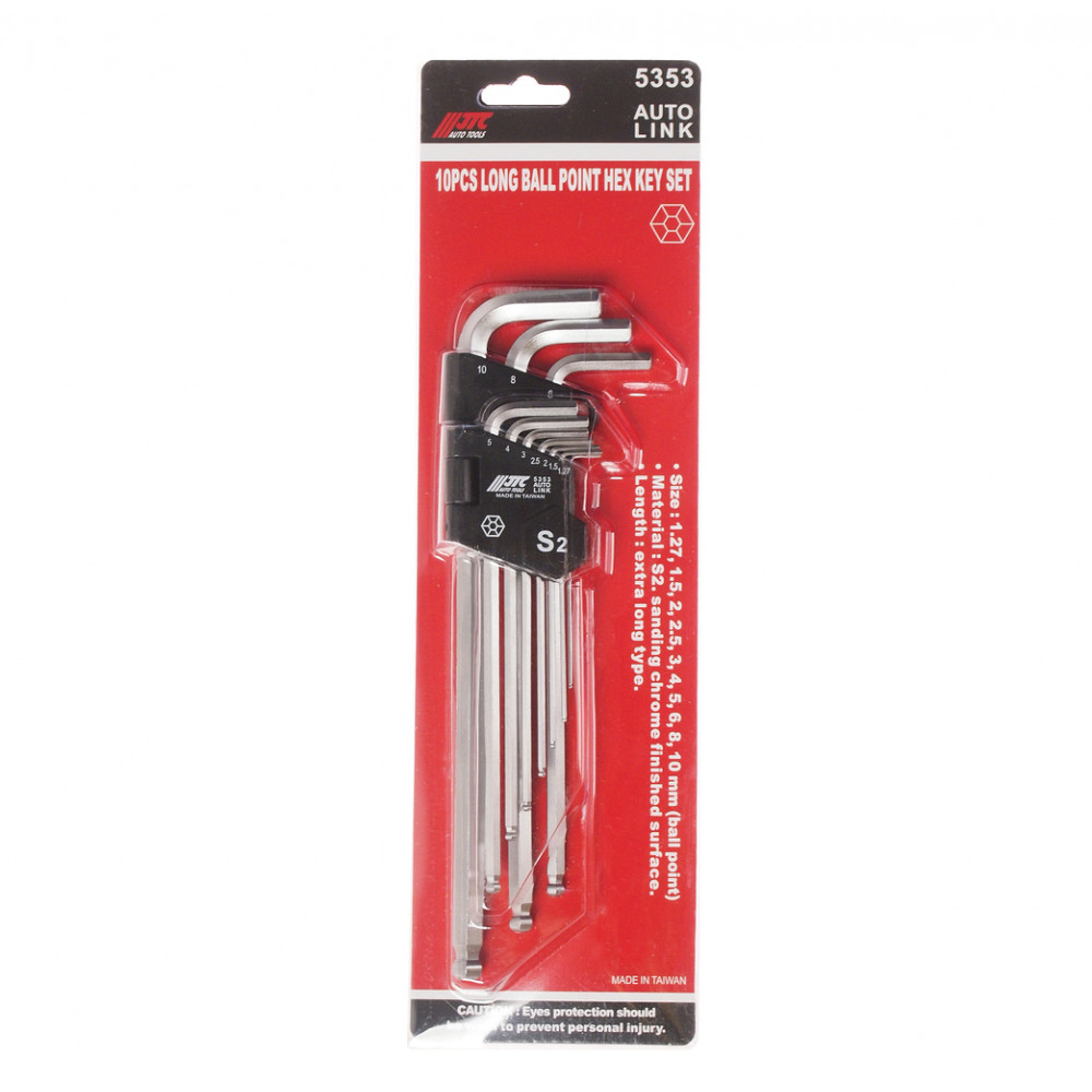 | 5353 JTC | Набор угловых ключей HEX с шаром 1.2-10мм удлиненных 10ед. |