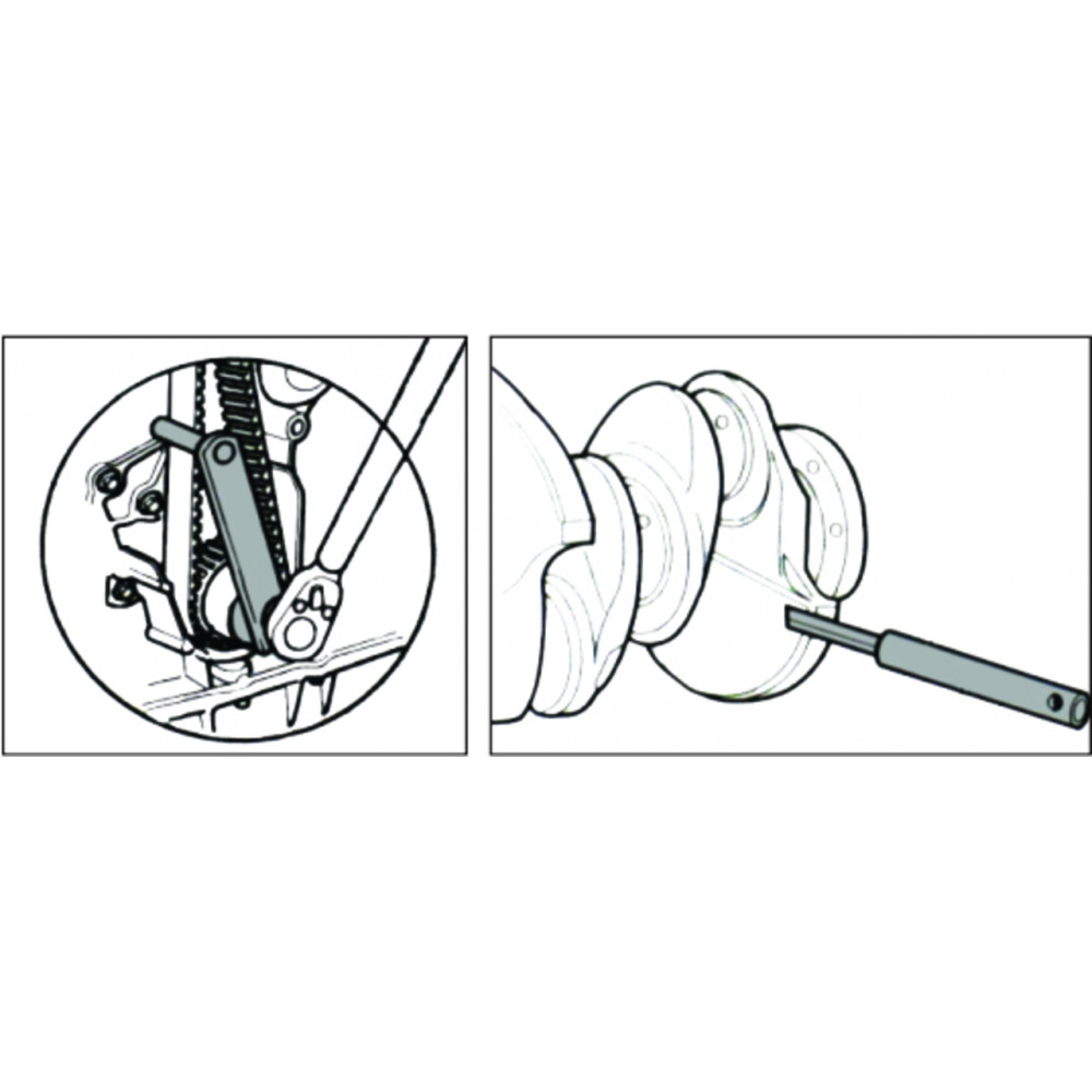 - Фіксації валів для заміни приводного ременя, шківів та інших компонентів приводу валів ГРМ;