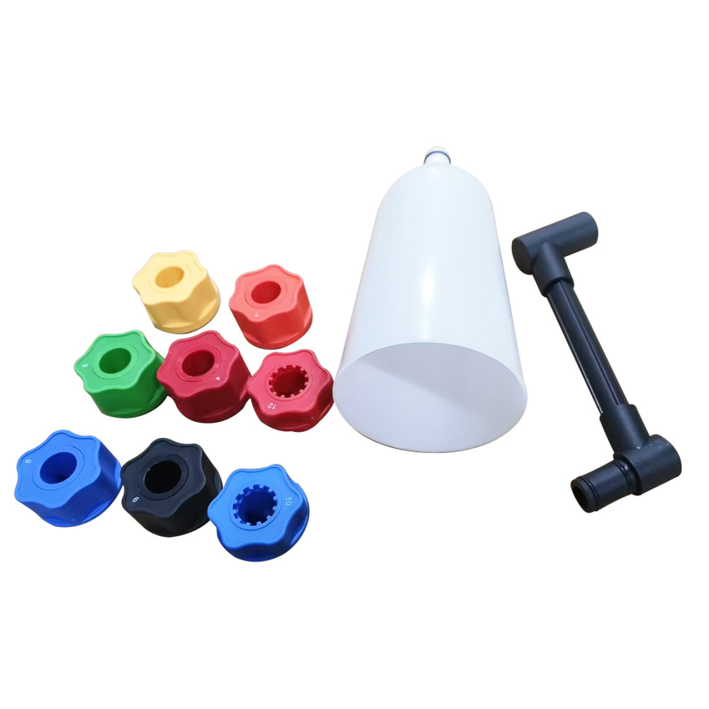 2-х літрова лійка та пластикові перехідники з кольоровим маркуванням для маслозаливного отвору.