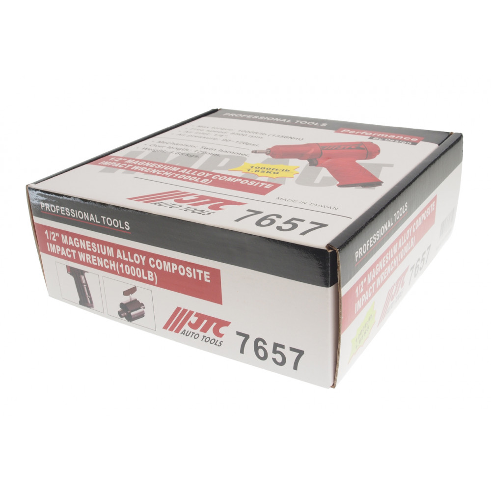 | 7657 JTC | Гайковерт пневматичний 1/2" (1356Нм, 8500об/хв, 179мм, 1.65кг) композитний корпус |