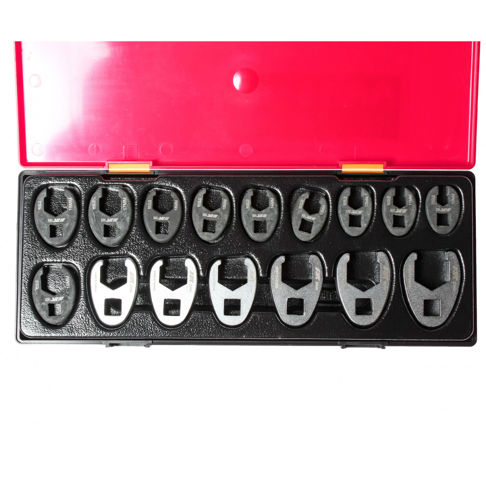 - Артикулы JTC-160510-160519: 3/8 ключ разрезной односторонний - 10 мм, 11 мм, 12 мм, 13 мм, 14 мм, 15 мм, 16 мм, 17 мм, 18 мм, 19 мм. - 10 шт.